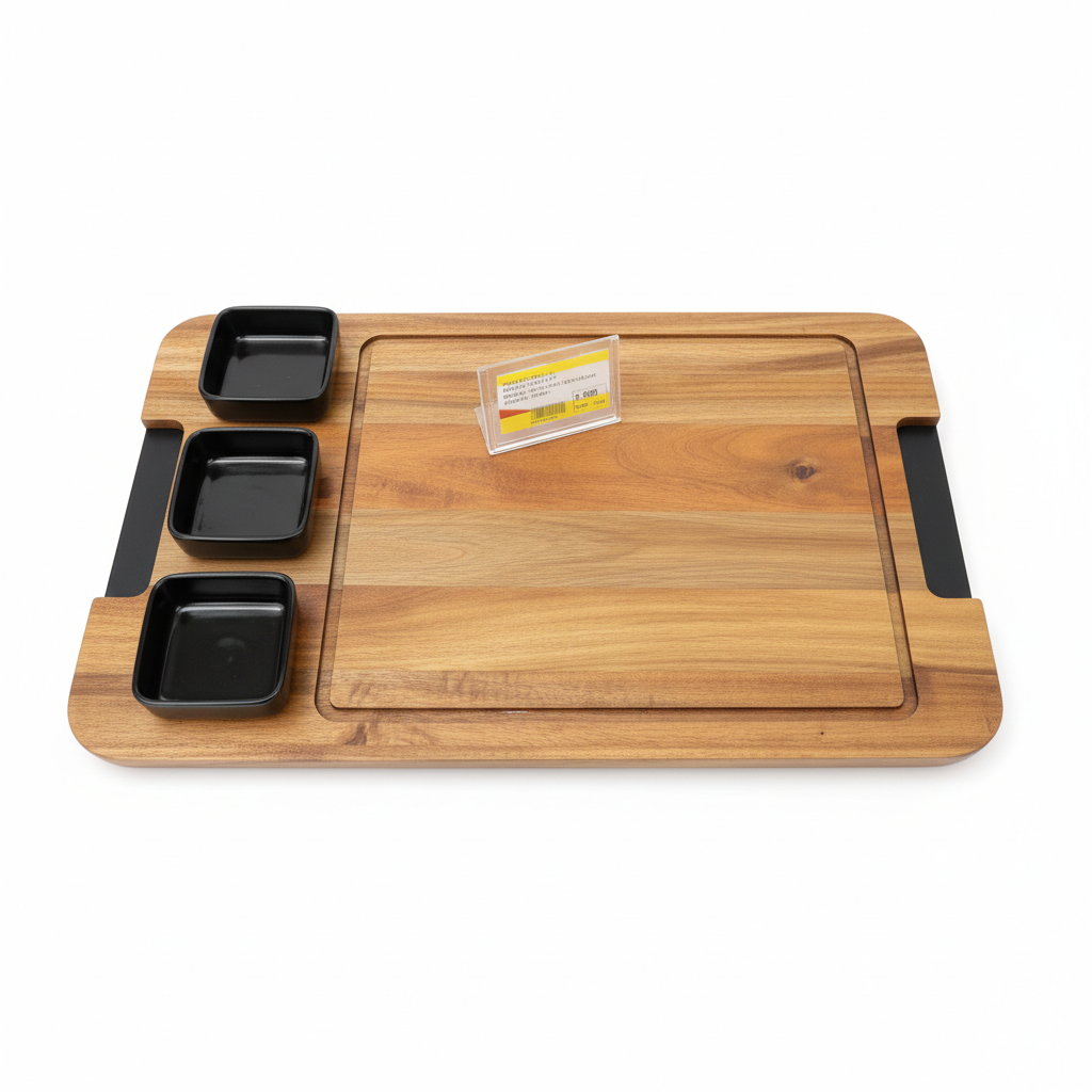 - Tabakë/dërrasë druri drejtkëndore – e përshtatshme si për prerje, ashtu edhe për servirje.