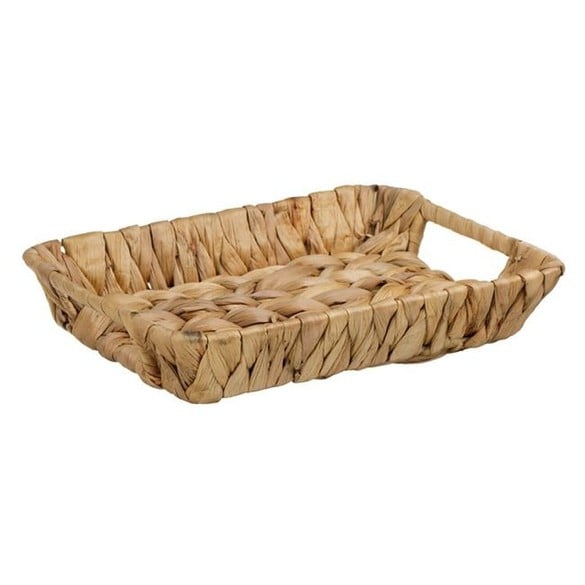 Tabaka me kornizë metalike të thurur kashte, një material 100% miqësor me mjedisin, me doreza për transport të lehtë. Është i përshtatshëm për kuzhinë, banjo dhe dhomë gjumi. Gjatësia x Gjerësia x Lartësia 23x18x4cm