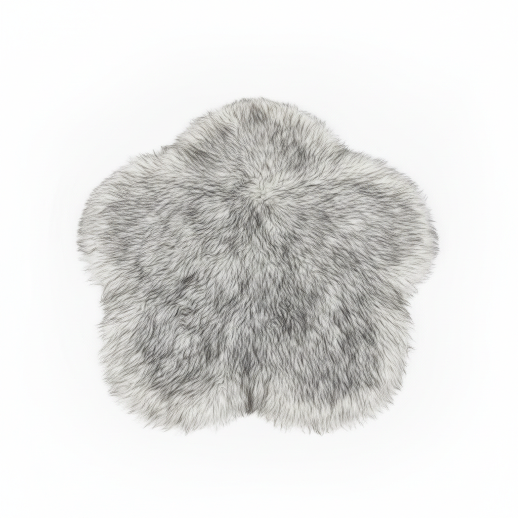 Tapet dekorativ me push të butë në nuanca gri dhe të bardha, me formë organike dekorative, ideal për ta vendosur në dysheme ose si aksent në hapësira të ndryshme.