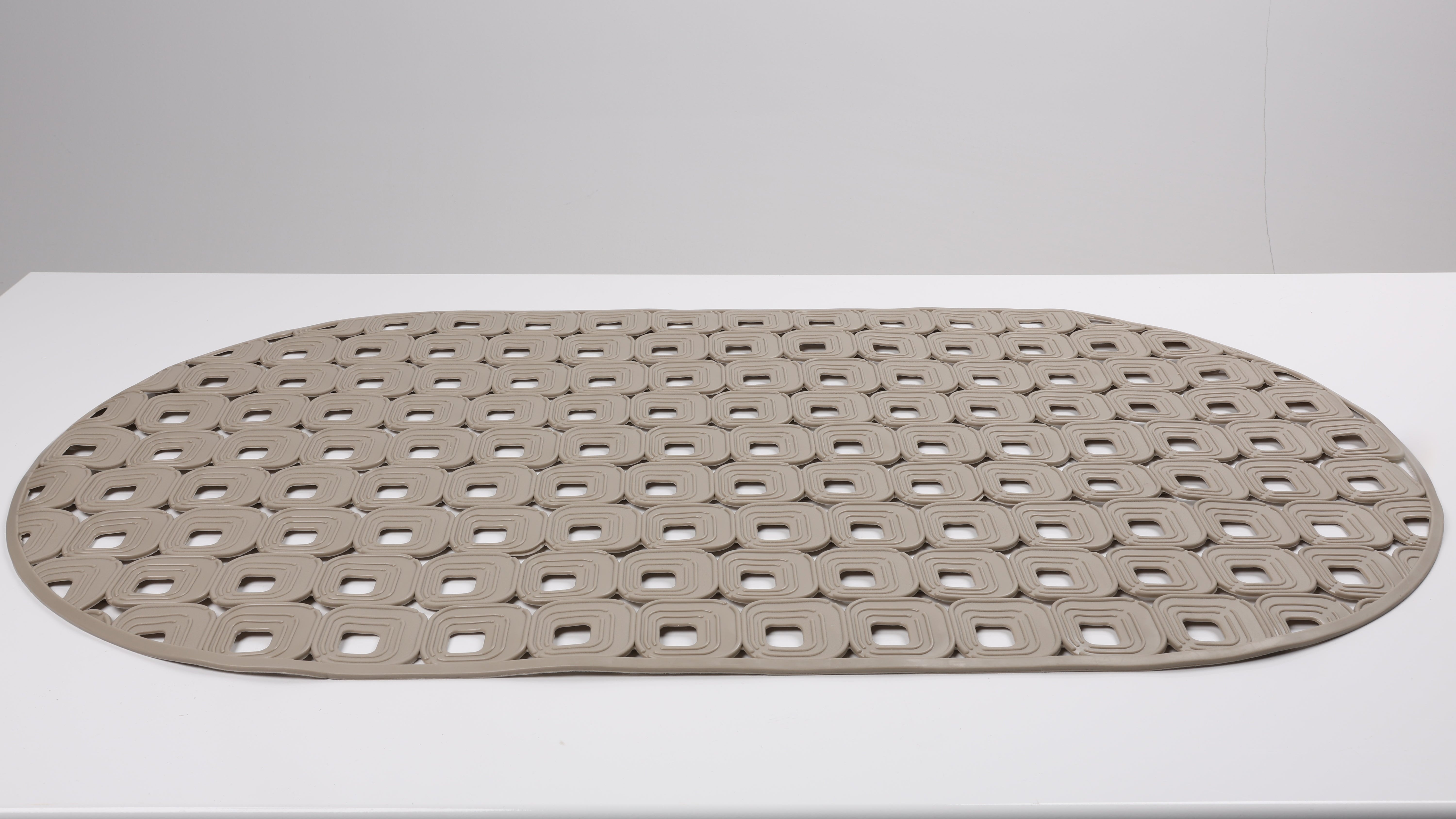 Ky tapet antirrëshqitës për banjo dhe dush siguron siguri maksimale dhe rehati gjatë përdorimit të përditshëm. Dizajni me forma gjeometrike krijon kapje të fortë në sipërfaqe, duke parandaluar rrëshqitjen edhe në ambiente të lagështa.