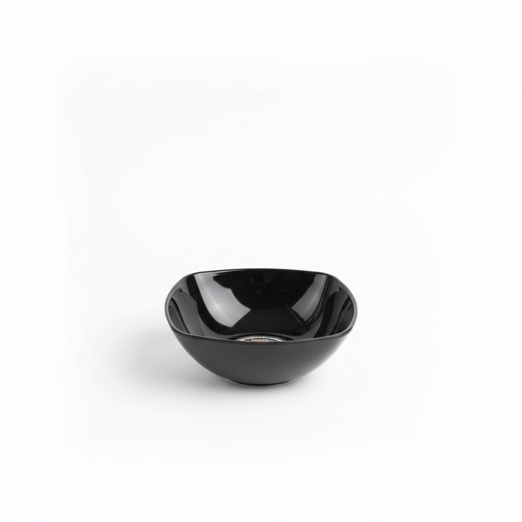 Tasë e vogël në ngjyrë të zezë elegante, me formë katrore të rrumbullakosur, ideale për servirje individuale në çdo tryezë moderne.