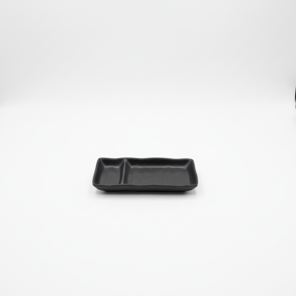 Pjatë shërbimi drejtkëndëshe me dy ndarje, në ngjyrë të zezë elegante dhe sipërfaqe të teksturuar, ideale për servirje moderne në çdo tryezë. Materiali melaminë e bën të lehtë dhe praktike për përdorim të përditshëm.