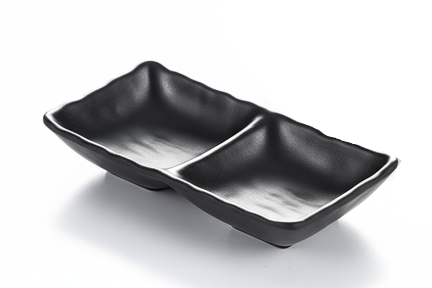 Pjatë shërbimi me dy ndarje, e dizajnuar në stil modern dhe minimalist, ideale për servirjen e salcave, antipastave, garniturave apo ushqimeve të vogla. Forma elegante me ndarje të veçuara ju lejon të prezantoni dy produkte njëkohësisht pa i përzier, duke e bërë tavolinën më të organizuar dhe estetike.