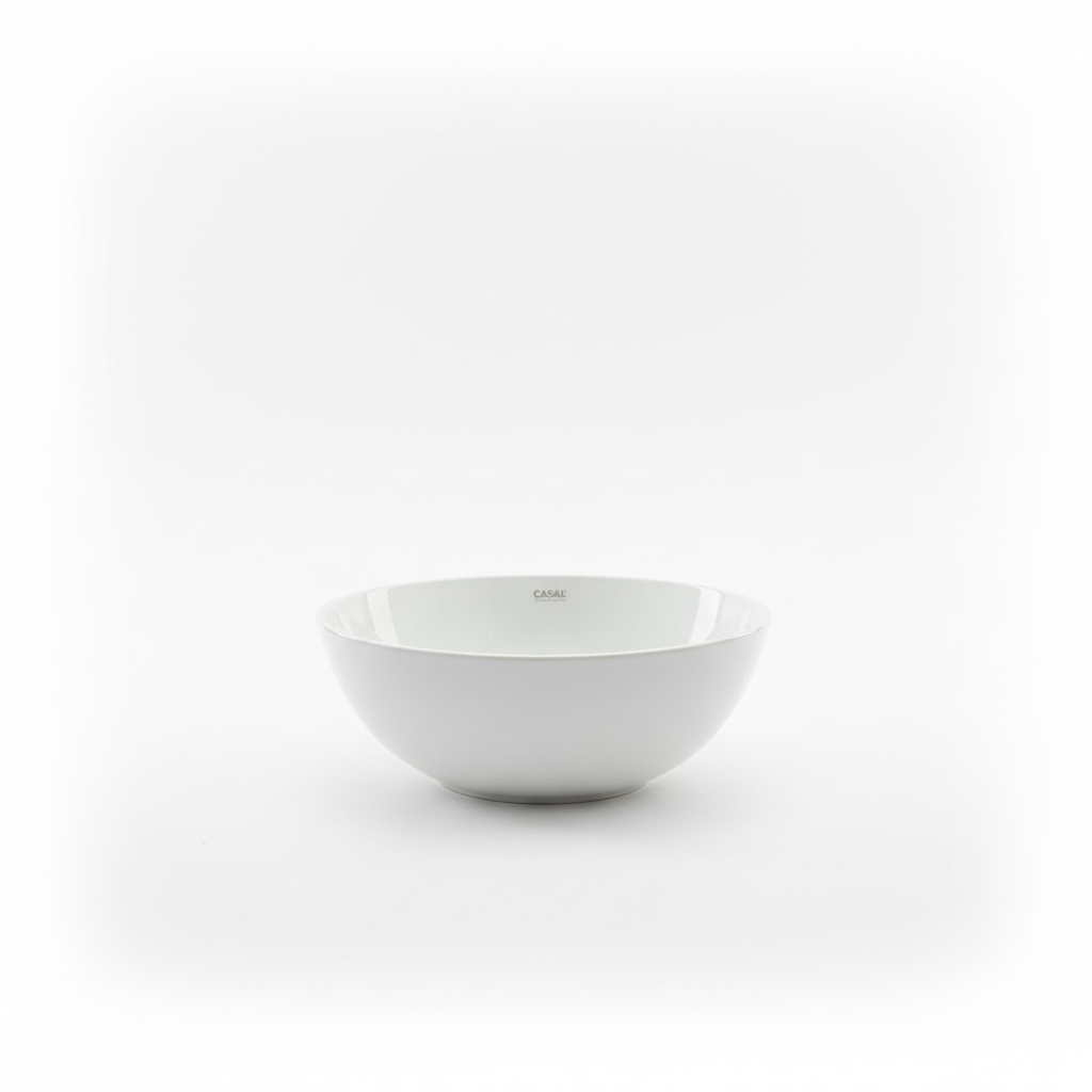 Tasë qeramike e bardhë me dizajn minimalist, e përshtatshme për përdorim të përditshëm në kuzhinë. E rehatshme për servirje dhe praktike për mirëmbajtje.