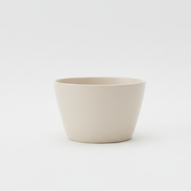 Tasi bardhë qeramik me formë të ngushtuar ofron stil minimalist dhe përdorim të përditshëm për çdo lloj pijeje. Dizajni i tij praktik e bën të lehtë organizimin në kuzhinë.