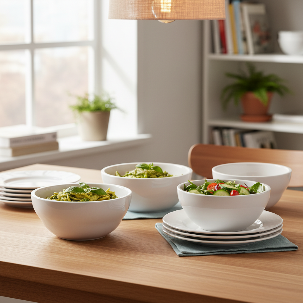 - Ngjyrë e bardhë neutrale që përshtatet me çdo stil servimi.