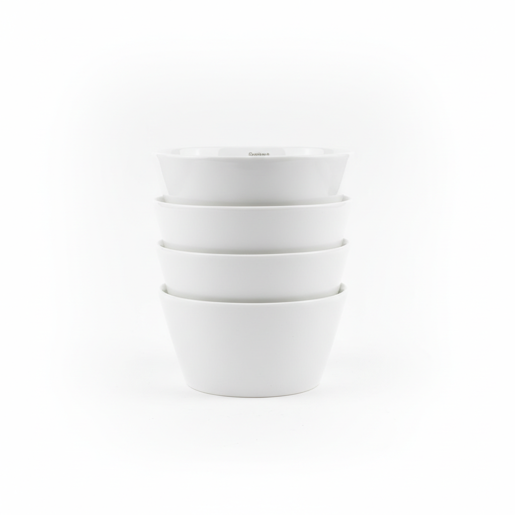 Tas i bardhë qeramik me dizajn të thjeshtë e elegant, i përshtatshëm për servimin e përditshëm të ushqimit në tryezë. Forma e tij praktike lejon grumbullimin e lehtë dhe kursen hapësirë në kuzhinë.