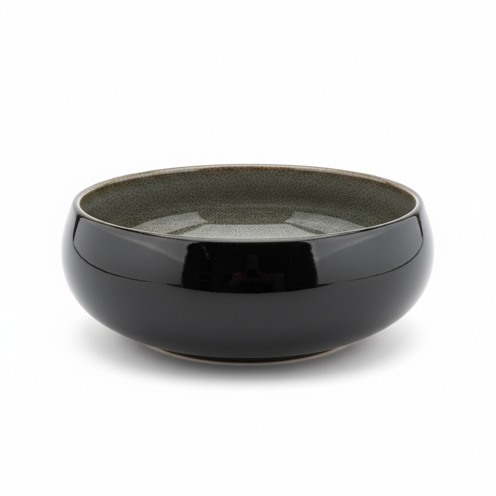 Tas i Sheshte Porcelani 15cm, Ngjyrë e Zezë me Brendësi Gri, Shkëlqim Elegant