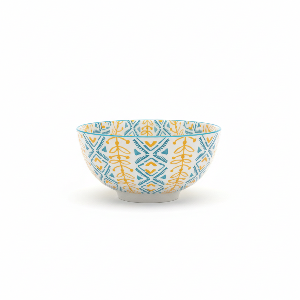 Ky tas i thellë 6.25" nga koleksioni Danny Home sjell ngjyra dhe stil gjeometrik në çdo tryezë, ideal për servirje të përditshme dhe përdorim praktik në kuzhinë.