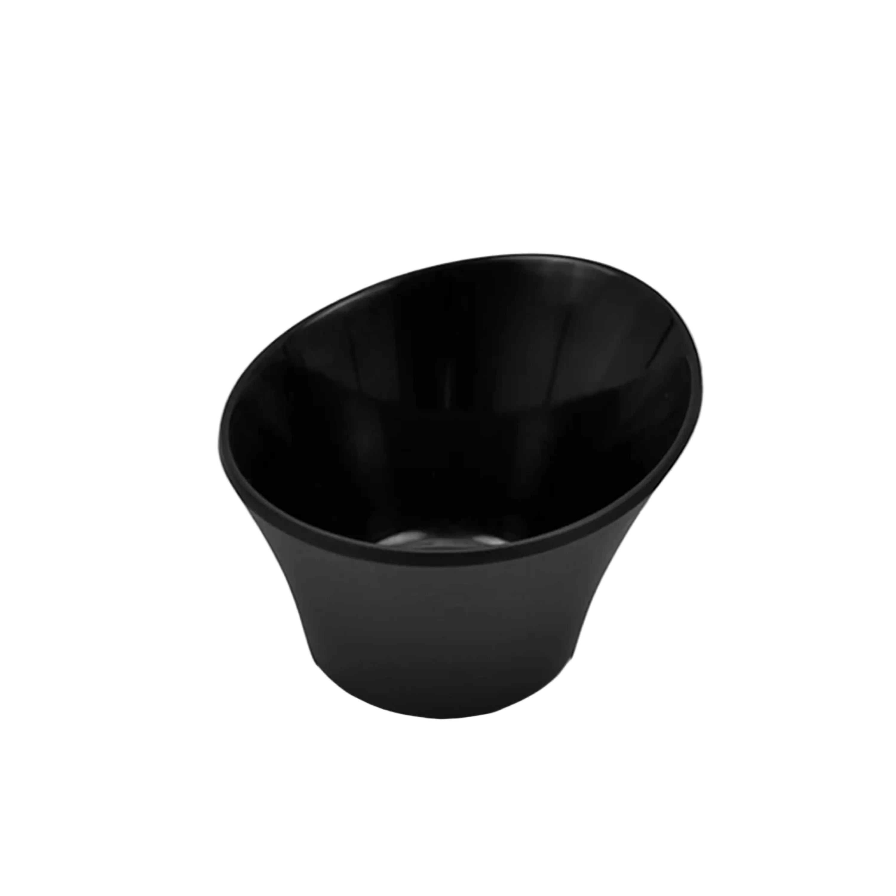 Tas modern me formë të pjerrët dhe dizajn minimalist, i përshtatshëm për servirjen e salcave, snack-eve, frutave të thata apo porcioneve të vogla. Ngjyra e zezë mat i jep një pamje elegante dhe bashkëkohore, duke u përshtatur lehtësisht me çdo stil tavoline.