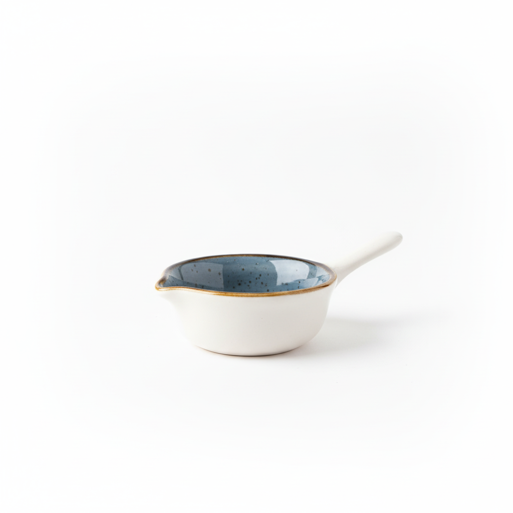 Tigani mini prej qeramike me dorezë është ideal për servirje të vogla, me dizajn dyngjyrësh elegant që i jep stil tryezës suaj. Praktik dhe i qëndrueshëm, përshtatet lehtësisht me përdorimin e përditshëm në kuzhinë.