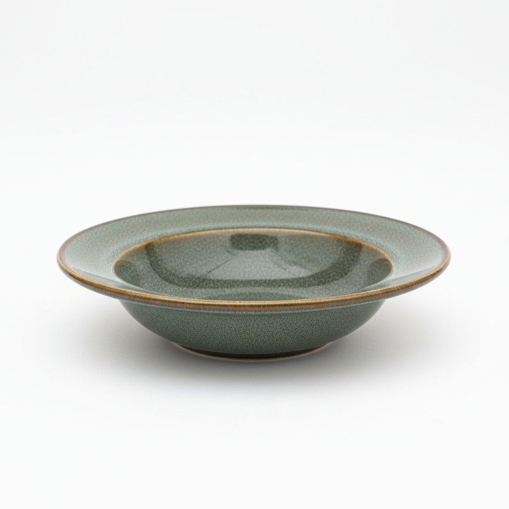 Kjo tasë prej porcelani cilësor me diametër 18 cm kombinon formën e thellë praktike me një pamje unike në ngjyrë jeshile me pika dhe buzë të glazuar. Ideale për servirjen e supave, pastave ose sallatave, ajo sjell stil dhe funksionalitet në çdo tryezë. Sipërfaqja e glazuar me pika i jep karakter artizanal, duke e bërë të përsosur si për përdorim të përditshëm, ashtu edhe për darka me mysafirë.