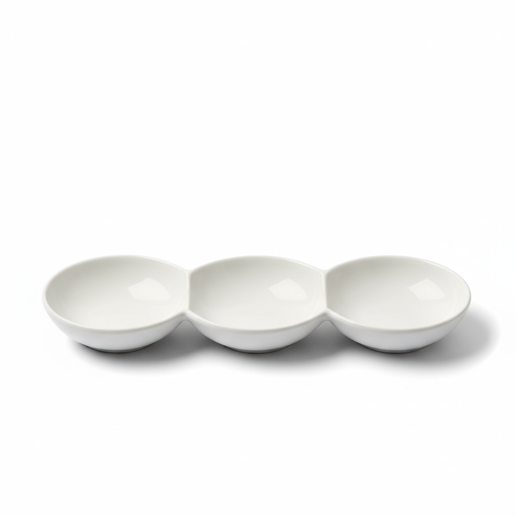 Tas Qeramik i Bardhë me 3 Ndarje për Meze dhe Salca