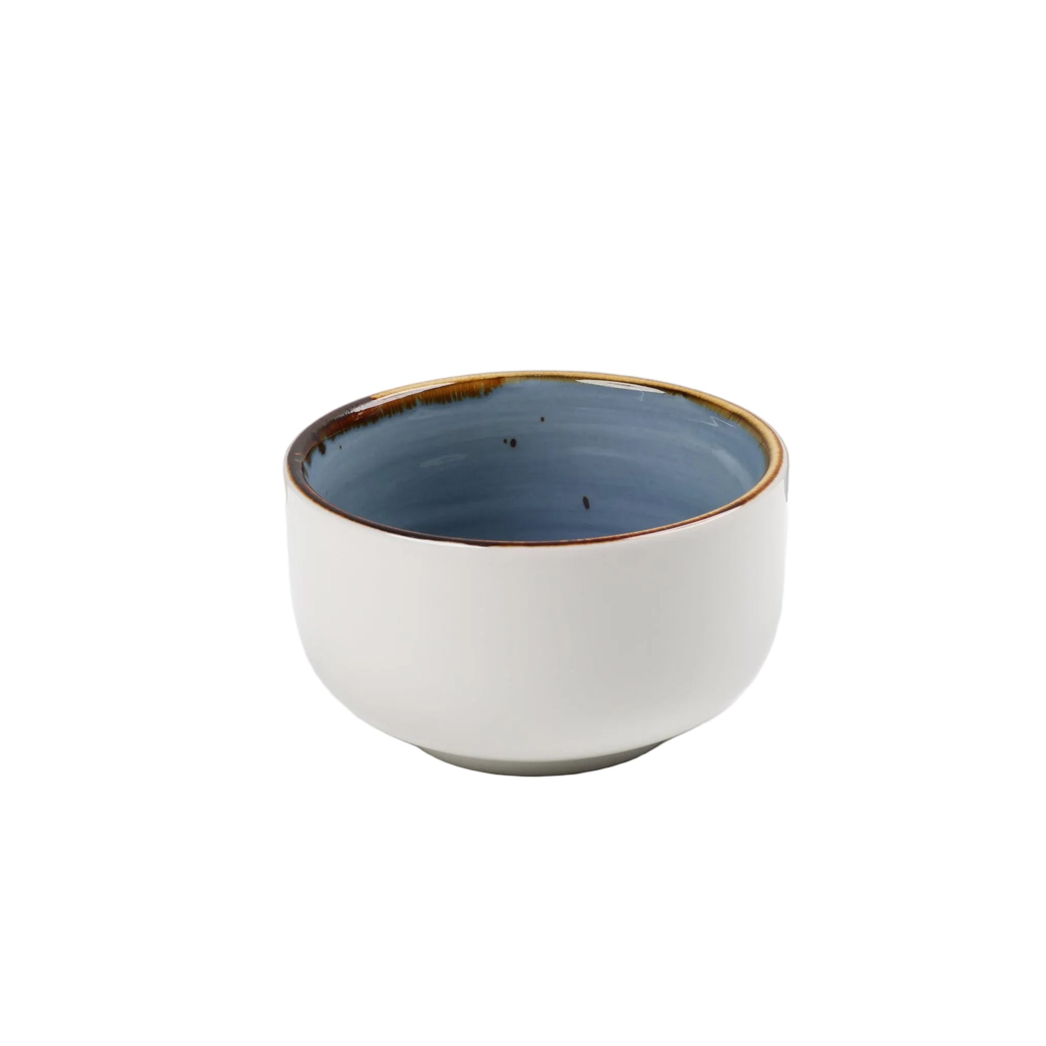 Tas elegant prej qeramike, me dizajn minimalist dhe kontrast shumë të bukur mes pjesës së jashtme të bardhë mat dhe brendësisë blu me efekt furçe. Buzët me detaj bronzi i japin një prekje artizanale dhe premium.