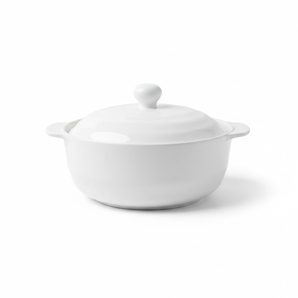Ky tas i thellë prej qeramike të bardhë me kapak është zgjidhja ideale për shërbimin me stil të supave, gjellëve dhe zierjeve të nxehta. Forma e tij e rrumbullakët me doreza anësore praktike e bën të lehtë transportimin nga furra apo soba në tryezë. Përfundimi i lëmuar me shkëlqim përshtatet lehtësisht me çdo servis ekzistues dhe sjell një pamje të pastër, moderne.