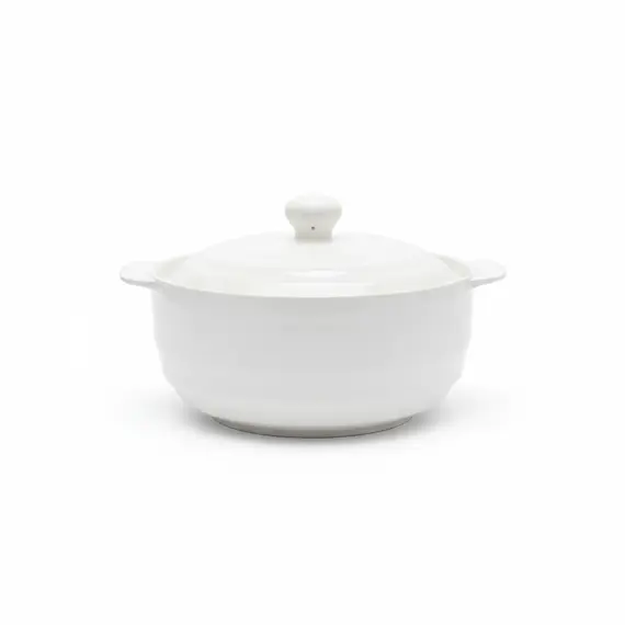 Enë elegante qeramike në ngjyrë të bardhë, ideale për servirjen e supave dhe gatimeve të ngrohta direkt në tryezë. Forma e rrumbullakët dhe linjat e thjeshta e bëjnë të lehtë për t’u kombinuar me çdo servis. Kapaku i përshtatur ruan temperaturën dhe aromën e ushqimit për më gjatë.