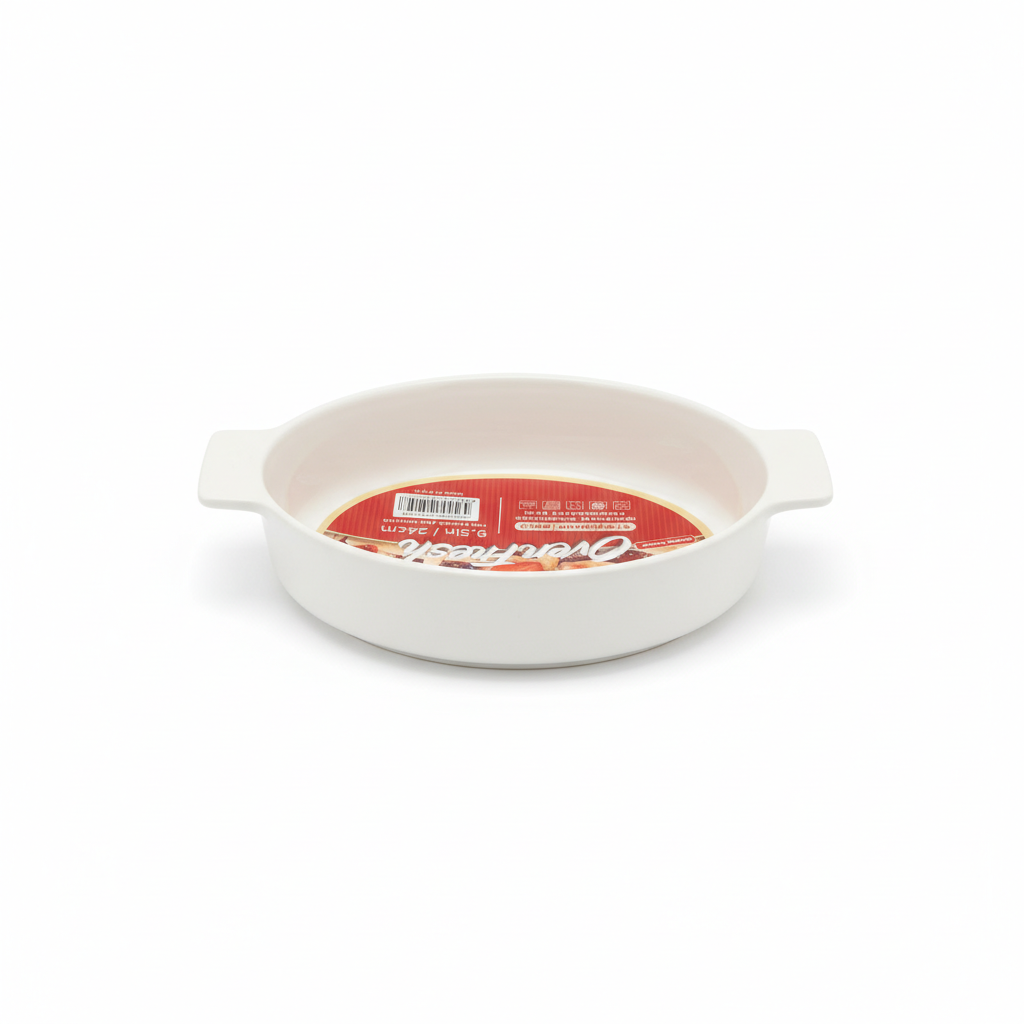 Tava e pjekjes prej porcelani 24 cm është ideale për gatim dhe shërbim direkt nga furra në tryezë. Me formë të rrumbullakët dhe doreza anësore, ajo kombinon funksionalitetin me pamjen elegante.