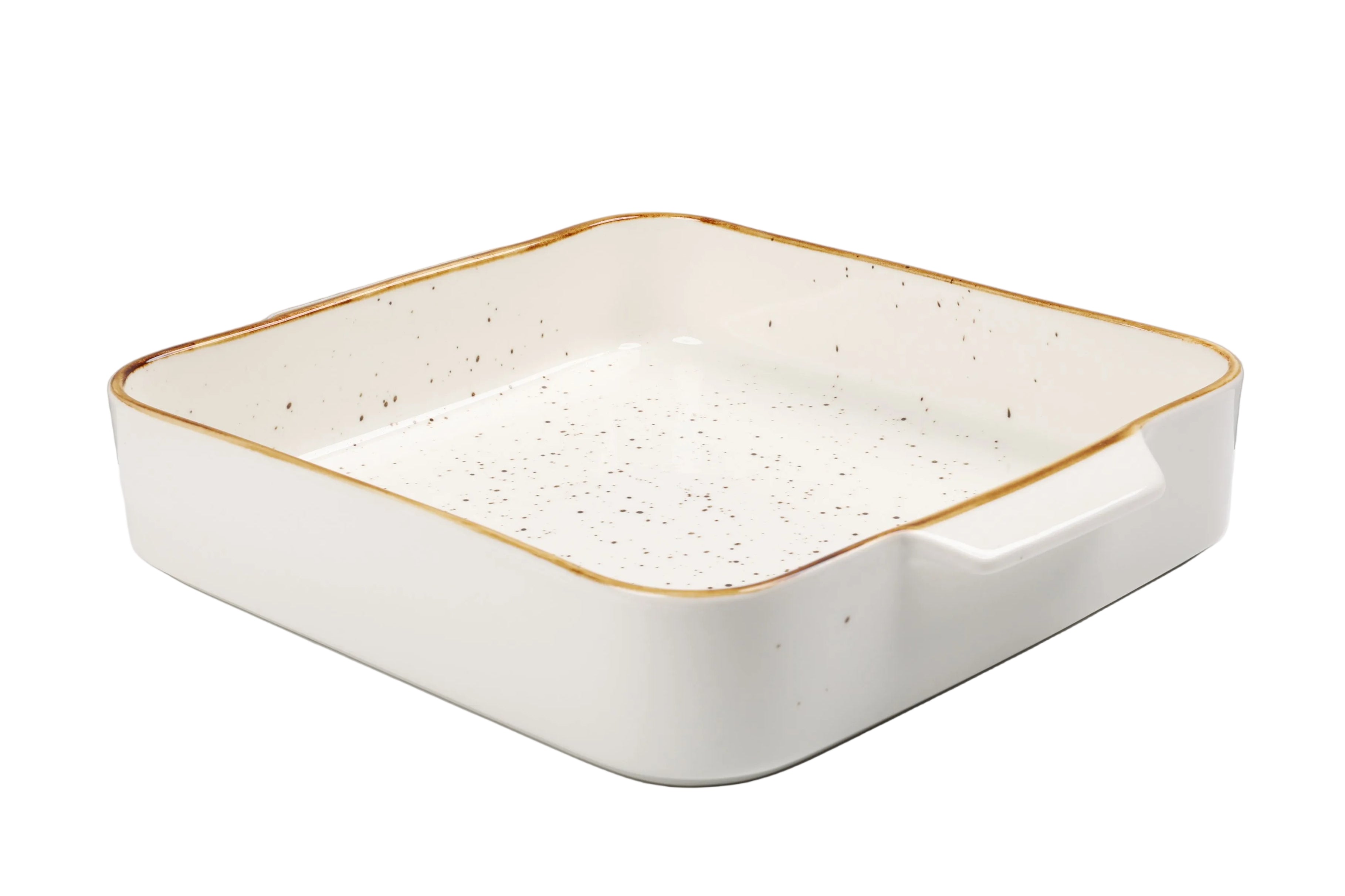 Tavë pjekjeje elegante prej porcelani cilësor, me dizajn minimalist dhe buzë gold dekorative. E përkryer për gatime në furrë dhe servirje direkte në tavolinë me stil modern.