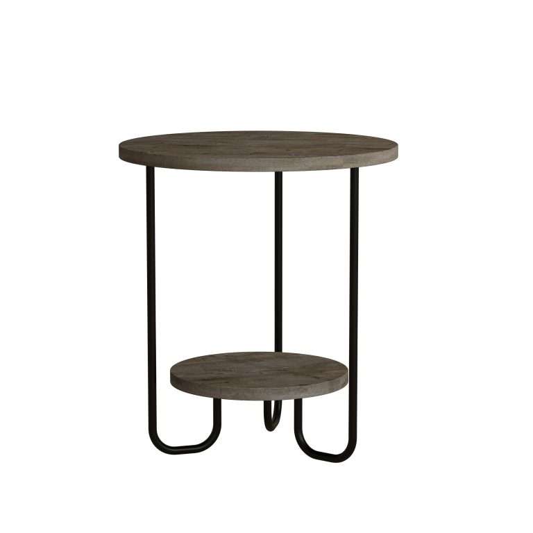 Kjo tavolinë anësore me dizajn të thjeshtë dhe elegant është ideale për dhomën tuaj të ndenjës. Pjesa e sipërme e rrumbullakët ofron hapësirë për artikujt tuaj të përditshëm, si dhe një raft të poshtëm për ruajtjen e aksesorëve dhe sendeve të vogla.