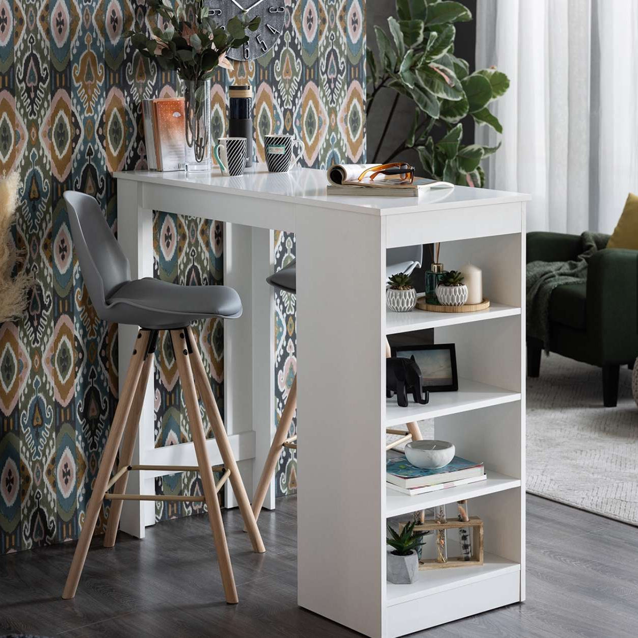 Tavolinë Multifunksionale me Rafte – Ngjyrë e Bardhë