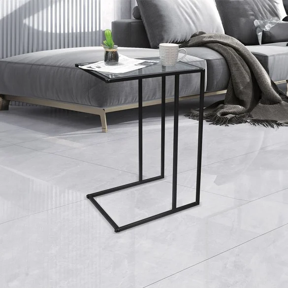 Tavoline me syprine xhami dhe kembe metalike 40x30x59cm