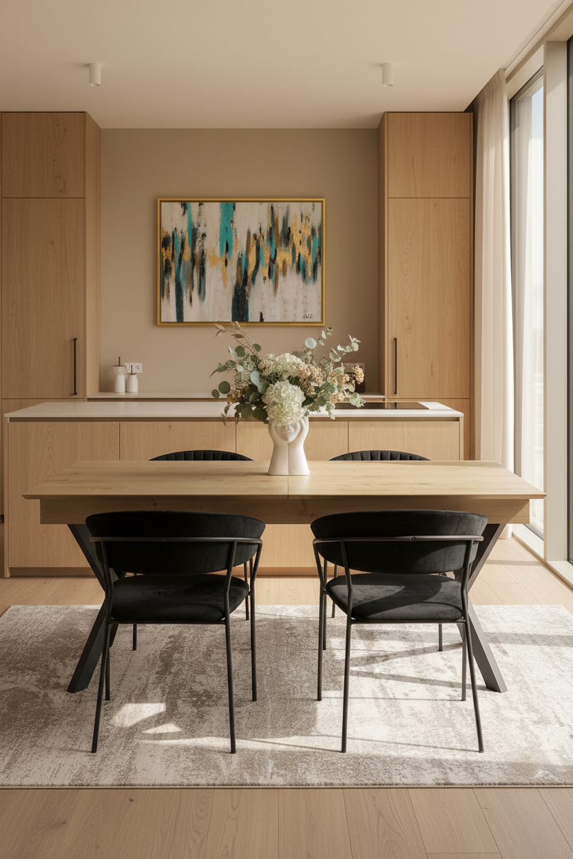 Dizajni i saj i pastër dhe linjat minimaliste e bëjnë të përshtatshme për ambiente të ndryshme, nga kuzhina te dhoma e ngrënies apo hapësira open-space. Ofron hapësirë të bollshme për përdorim të përditshëm, vakte familjare apo takime me miq.