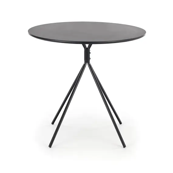 Tavolinë elegante me formë rrethore, e përshtatshme për ambiente bashkëkohore dhe hapësira të vogla apo mesatare. Dizajni minimalist me këmbë metalike të zeza krijon një pamje moderne dhe të qëndrueshme.