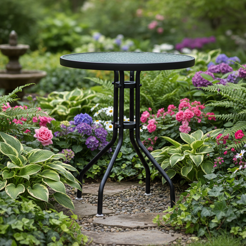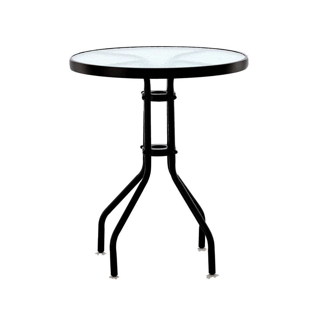 Struktura metalike e fortë siguron stabilitet dhe qëndrueshmëri gjatë përdorimit, ndërsa sipërfaqja prej xhami të fortë ofron një pamje të pastër dhe është e lehtë për mirëmbajtje. Kjo e bën tavolinën të përshtatshme për përdorim të përditshëm si në ambiente të jashtme ashtu edhe të brendshme.