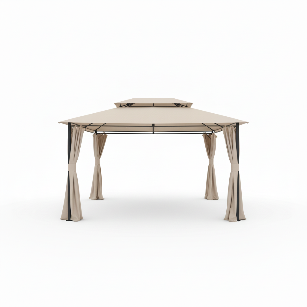 Dizajni modern dhe ngjyra neutrale e bëjnë këtë gazebo të lehtë për t’u kombinuar me mobilie të jashtme dhe dekor të ndryshëm, duke krijuar një atmosferë të sofistikuar dhe mikpritëse.