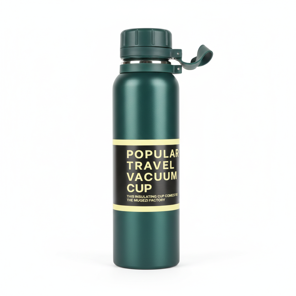 Shishja e udhëtimit me izolim vakum mban pijet tuaja në temperaturën e dëshiruar gjatë gjithë ditës, ideale për punë, palestër apo udhëtime. Kapaciteti rreth 800 ml ofron hapësirë të mjaftueshme për ujë, çaj ose kafe, ndërsa dizajni i ripërdorshëm ndihmon në reduktimin e përdorimit të plastikës njëpërdorimshe. Kapaku me filetë siguron mbyllje të fortë, dhe unaza praktike në kapak lehtëson mbajtjen ose fiksimin në çantë. E disponueshme në disa ngjyra të ndryshme për t’iu përshtatur stilit tuaj.