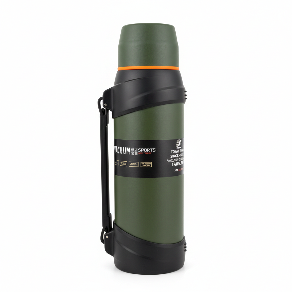 Termusi i izoluar mban pijet tuaja të ngrohta ose të ftohta për orë të tëra, ideal për udhëtime, aktivitete sportive dhe kamping. Trupi i fortë me ngjyrë të gjelbër i reziston përdorimit të përditshëm, ndërsa dizajni praktik kursen hapësirë në çantë apo makinë. Kapaku me vidë shërben edhe si gotë praktike për shërbim të shpejtë në lëvizje.