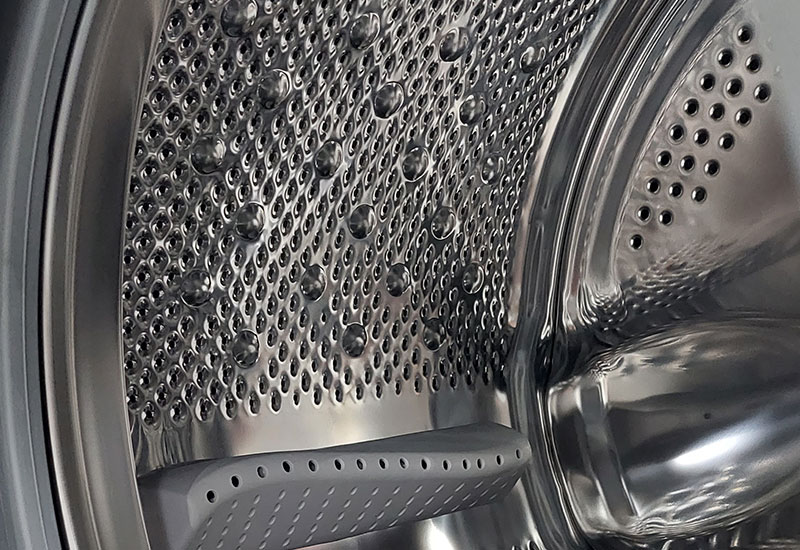 Dizajni inovativ i kazanit në lavatriçe dhe tharëse në tharëse përmirëson procesin e larjes dhe tharjes, duke siguruar trajtim më të butë të rrobave tuaja për kujdes të përmirësuar.