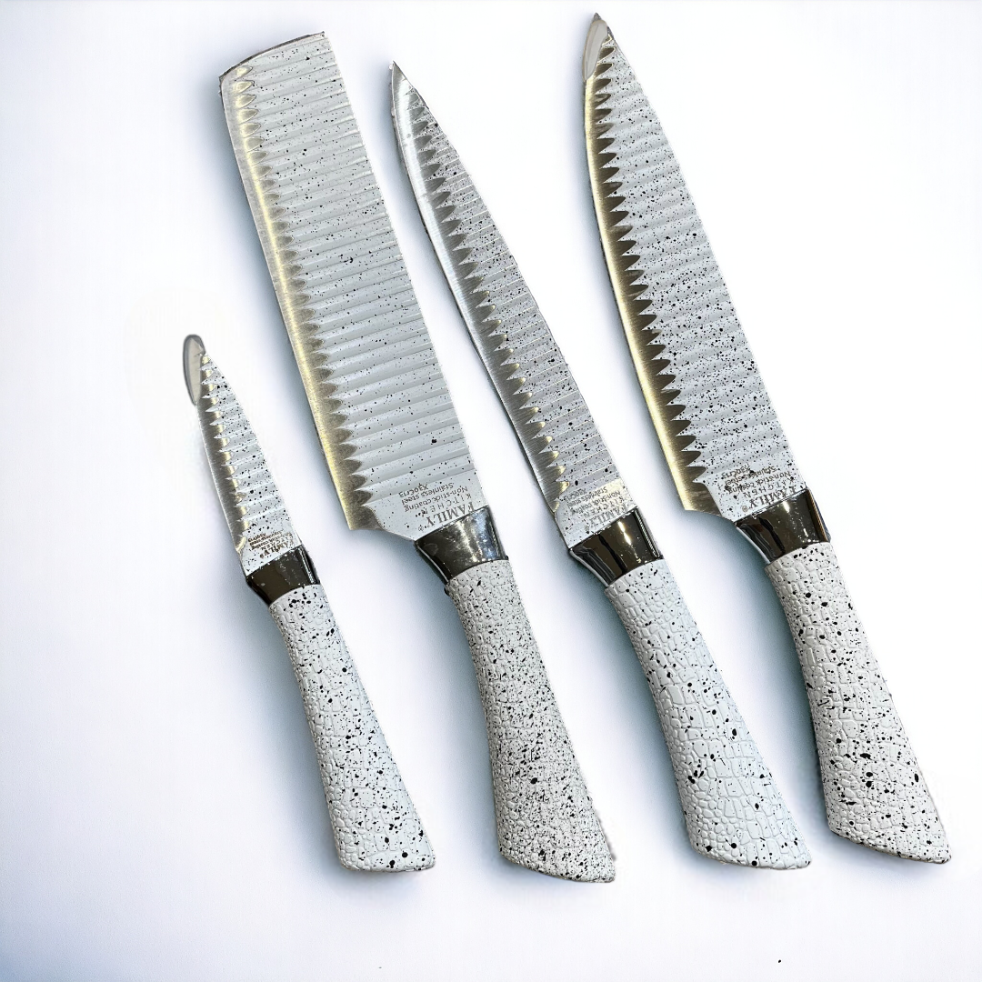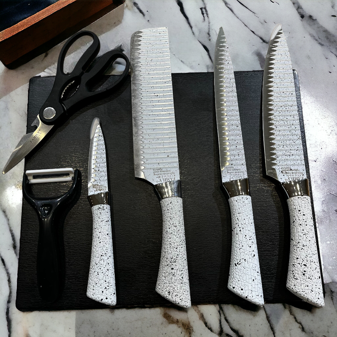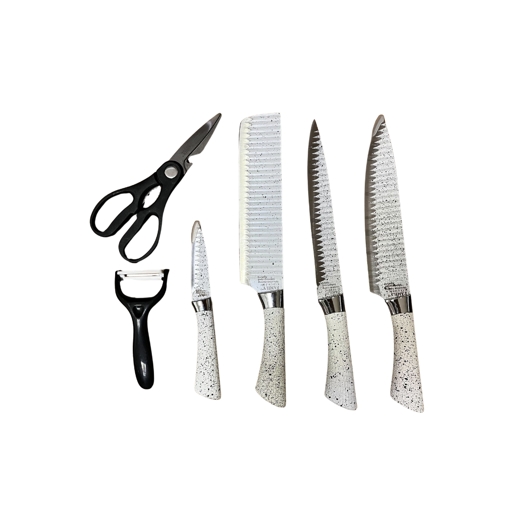 Thika Family White është kompleti perfekt i gjithanshëm për kuzhinierë, i cili përmban aksesorët thelbësor që i duhen çdo kuzhine. Prodhuar me tehe qeramike të cilësisë së lartë, të mprehta për prerje të saktë, dizajni i sipërfaqes së tehut të valëzuar, veshja jo ngjitëse dhe doreza me kapje ergonomike e bëjnë rrëshqitjen dhe prerjen mjaft të lehtë në çdo lloj ushqimi. Ky set thikash vjen i paketuar në një kuti, gati për dhuratë.