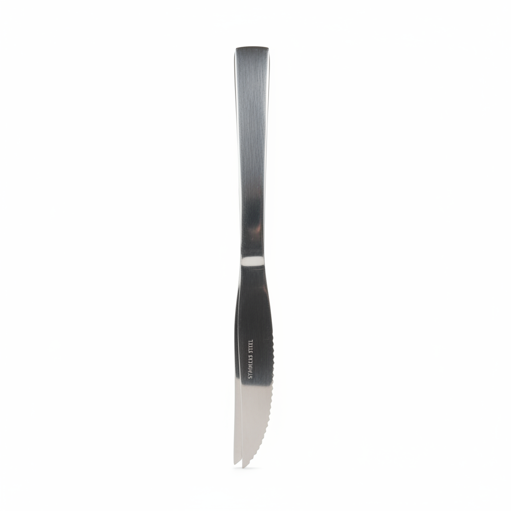 Set praktik thikash kuzhine prej çeliku inoks, i përshtatshëm për përdorim të përditshëm në përgatitjen dhe servimin e ushqimeve. Dizajni ofron ndjesi të rehatshme në dorë dhe prerje të qëndrueshme.