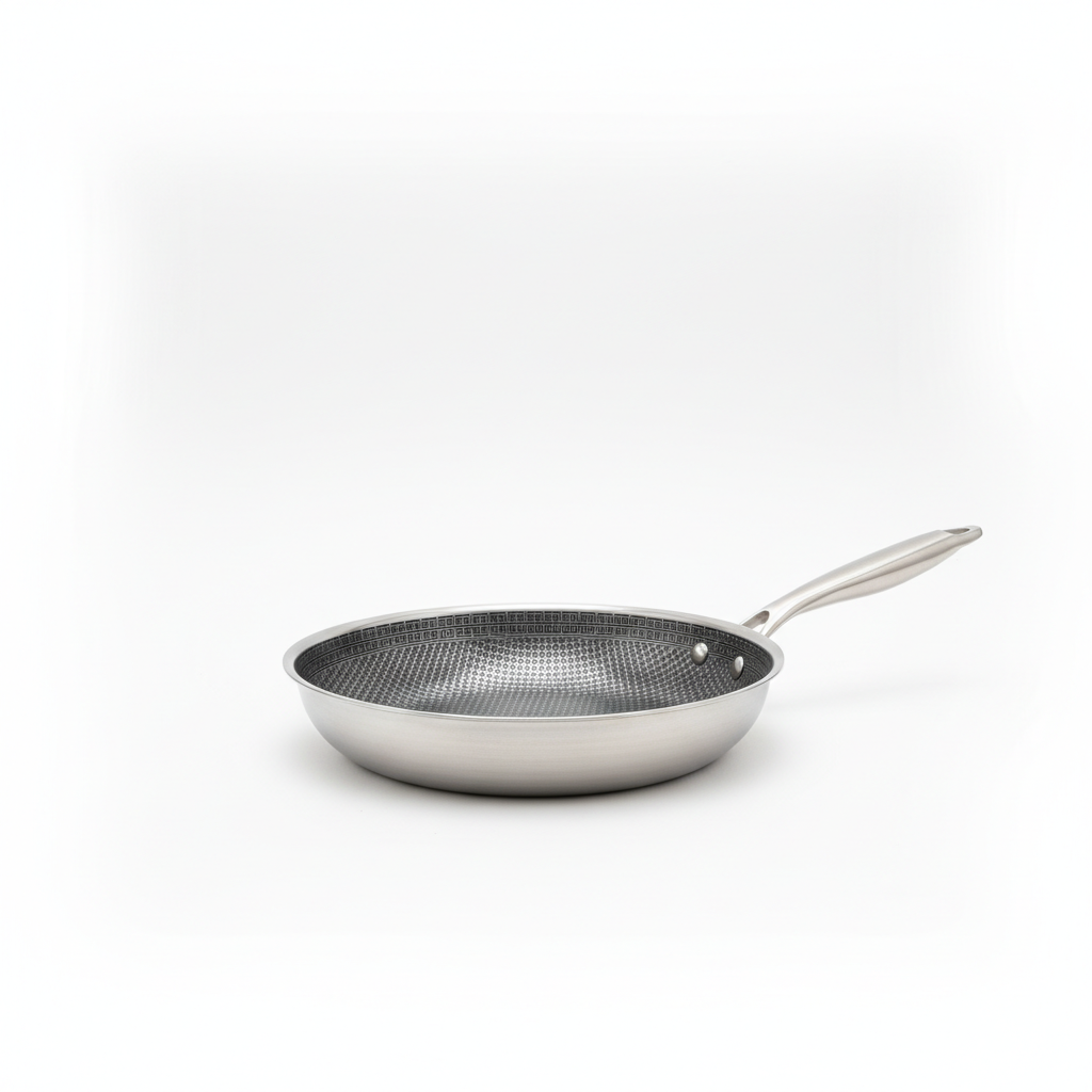 Tigan çeliku inox me dizajn klasik dhe sipërfaqe të strukturuar të brendshme, i përshtatshëm për skuqje të përditshme në kuzhinë. Doreza e gjatë siguron manovrim të lehtë dhe kontroll më të mirë gjatë gatimit.