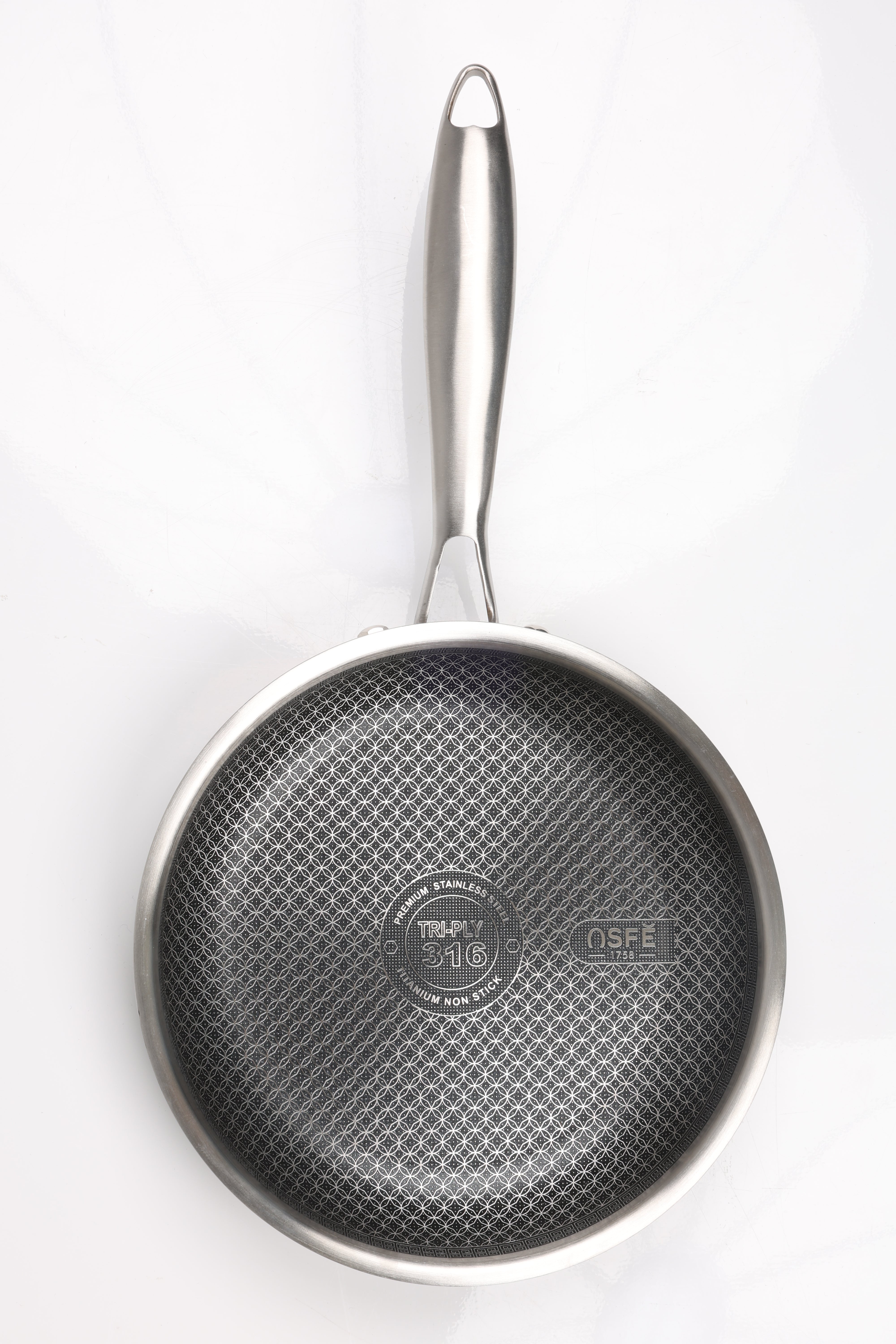 Tigan cilësor prej çeliku inox (stainless steel), i dizajnuar për gatim të shëndetshëm dhe performancë maksimale në kuzhinë. Sipërfaqja e brendshme me teksturë speciale ndihmon në shpërndarjen uniforme të nxehtësisë dhe redukton ngjitjen e ushqimit.