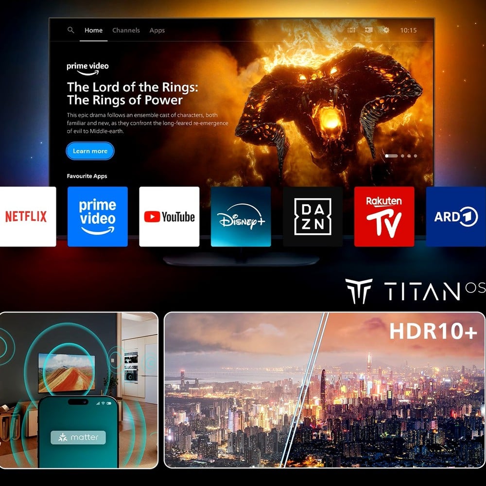 Falë HDR10+ dhe teknologjisë Pixel Precise Ultra HD, ngjyrat janë të gjalla, kontrasti është i thellë dhe detajet duken të qarta edhe në skena të errëta. Për audion kujdesen Dolby Atmos dhe DTS:X, që krijojnë një përvojë rrethimi zanor të pasur. Me opsione moderne si Game Mode dhe integrim me Alexa & Google Home, ky model është zgjedhje e shkëlqyer për argëtim të plotë në shtëpi.