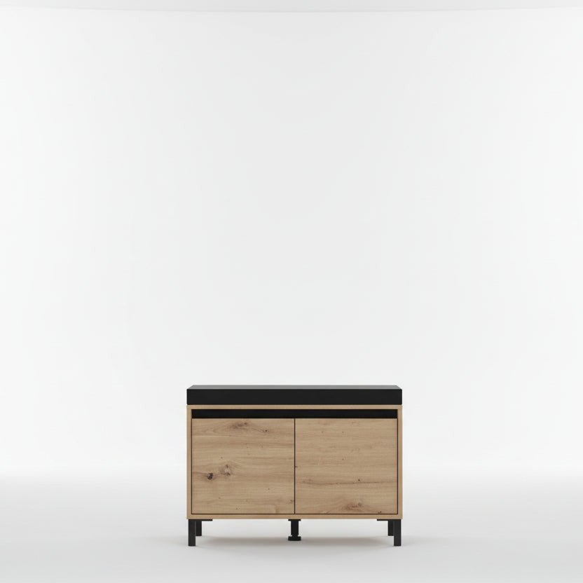 | Materiali | Melamine Artisan Oak, Detaje Matte Black & Pëlhurë |