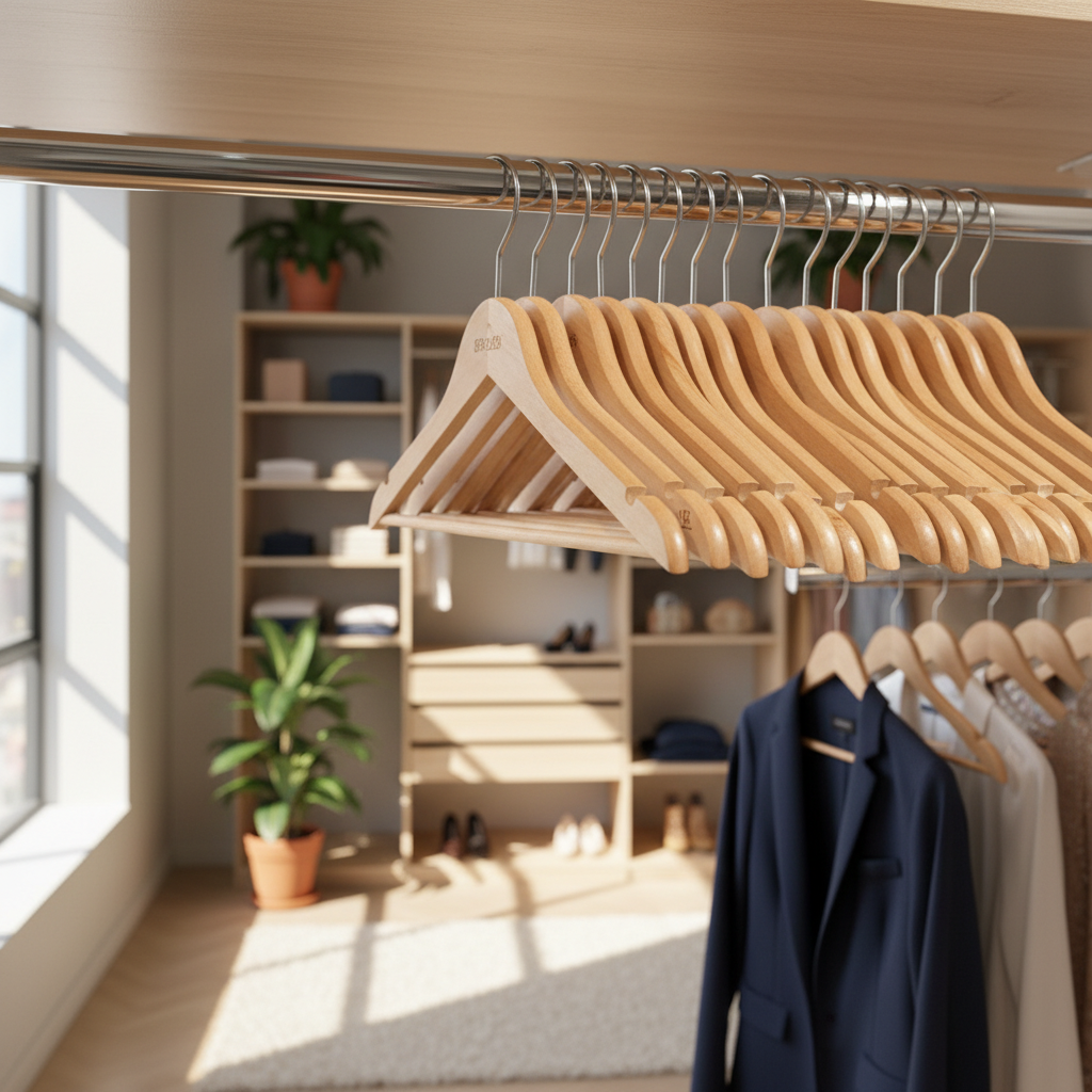 Këto varëse rrobash prej druri ofrojnë një mënyrë të thjeshtë dhe estetike për të mbajtur garderobën të rregullt dhe të mbrojtur. Konstrukti i tyre i qëndrueshëm mban veshjet në formë, ndërsa përfundimi natyral i drurit i jep një pamje të ngrohtë çdo dollapi.