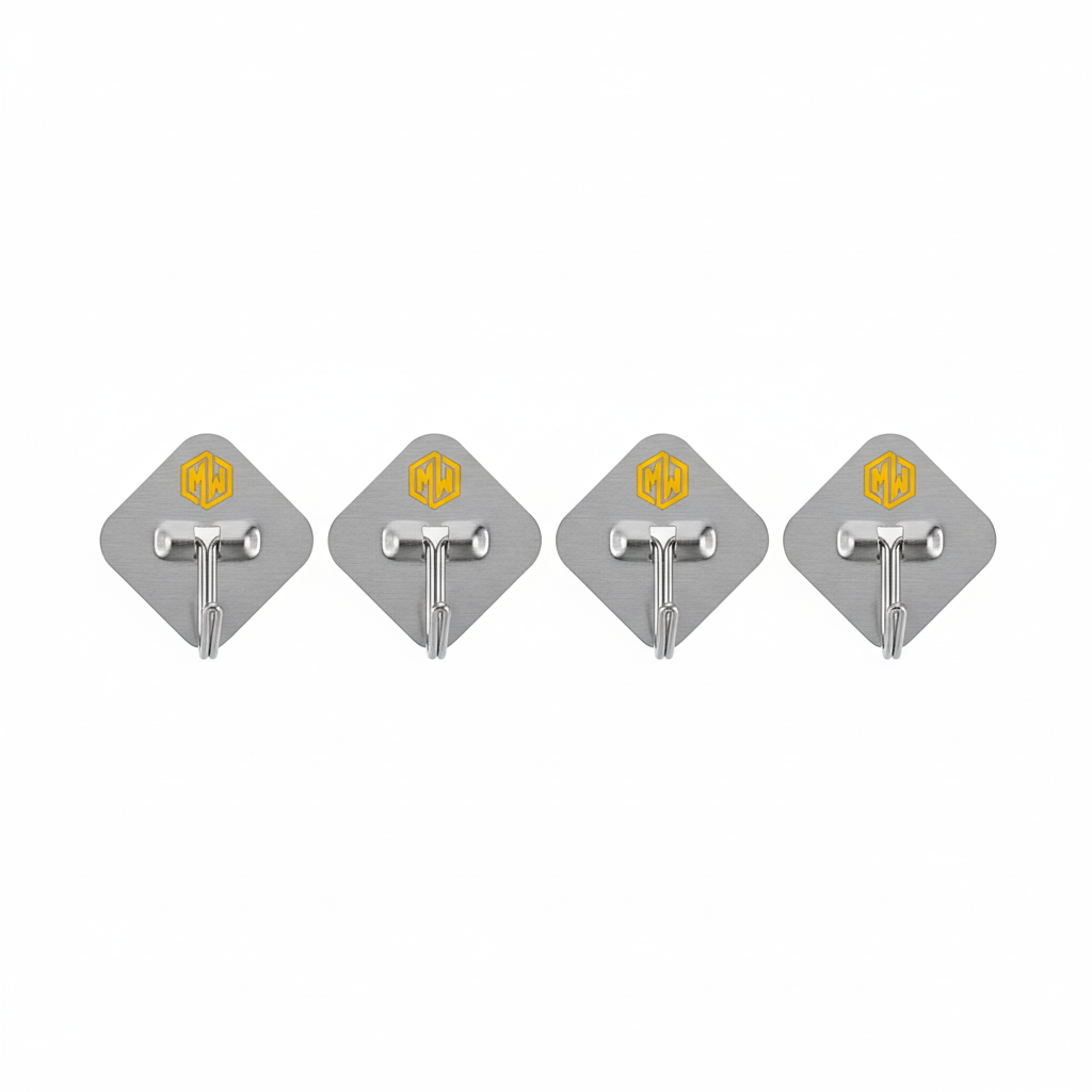 Set prej 4 varësesh metalike ngjitëse për mur, ideale për organizimin praktik të sendeve në sipërfaqe të lëmuara. Dizajni i tyre kompakt dhe materiali metalik i farkëtuar ofrojnë mbajtje të sigurt deri në rreth 3.0 kg.