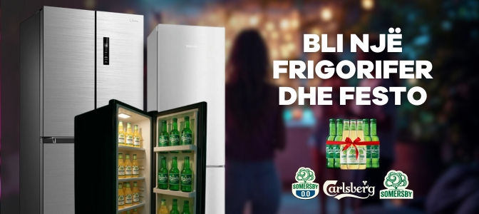 Festa vazhdon me ofertat më freskuese të vitit! Bli frigoriferin tënd online dhe përfito birra Carlsberg dhe Cider Somersby falas.