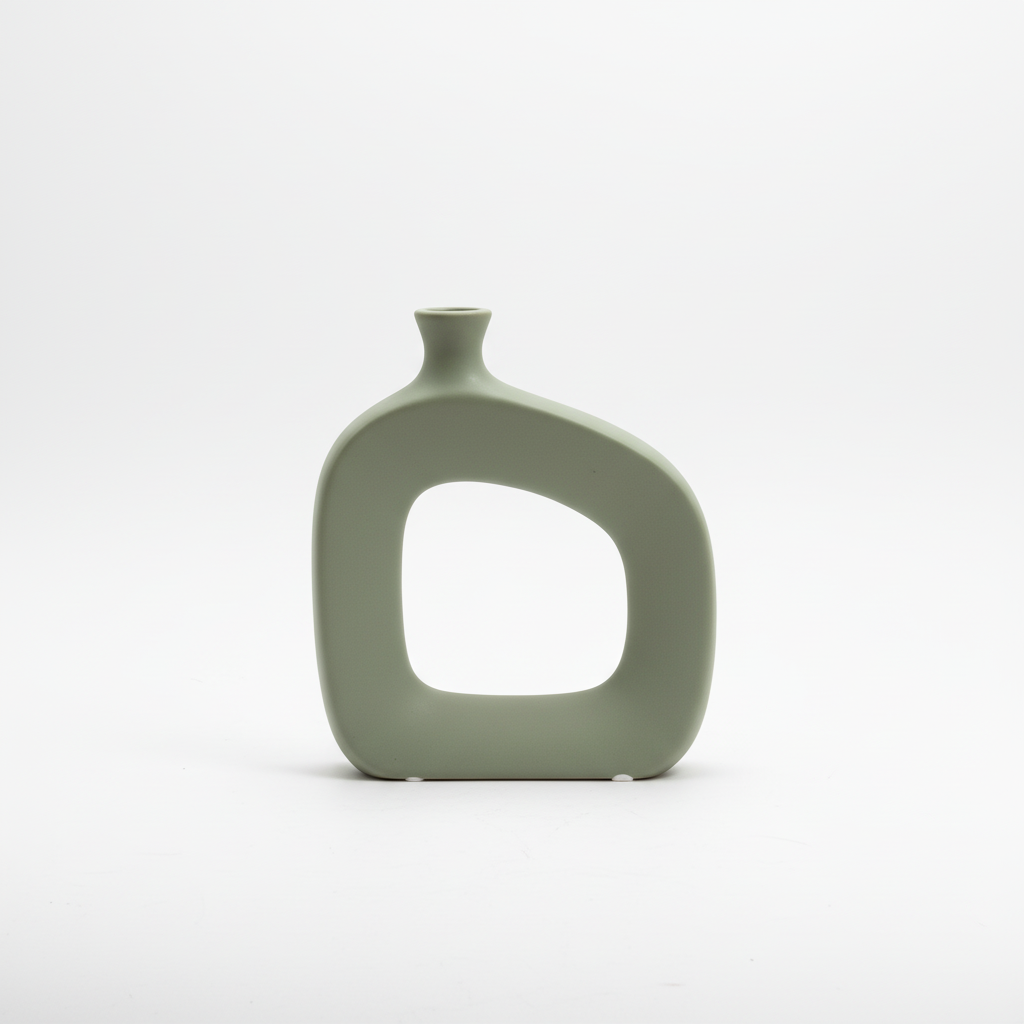 Vazo dekorative qeramike me përfundim mat dhe dizajn modern gjeometrik të hapur, ideale për t’u vendosur mbi tavolinë. Hapja e vogël në krye e bën perfekte për një degë ose lule të vetme.