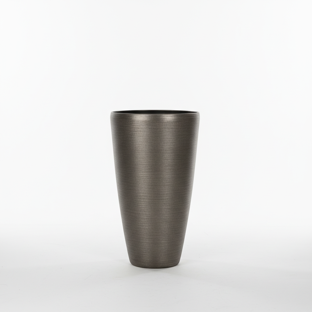 Vazo dekorative cilindrike e lartë me pamje moderne çeliku të furçuar, ideale për të shtuar një prekje elegante në çdo ambient. Dizajni minimalist e bën të lehtë për t’u kombinuar me stile të ndryshme mobilimi.