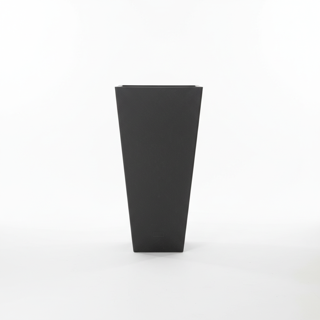 Vazo dekorative plastike në ngjyrë charcoal black me formë drejtkëndore të ngushtuar, ideale për dekorimin modern të ambientit tuaj të brendshëm. Madhësia 28×28×61 cm e bën një element të dukshëm dhe elegant për lule dhe kompozime dekorative.