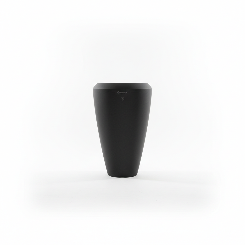 Vazo dekorative dyshemeje në ngjyrë coal black me formë të lartë konike, ideale për t’i dhënë një prekje moderne ambienteve të brendshme.