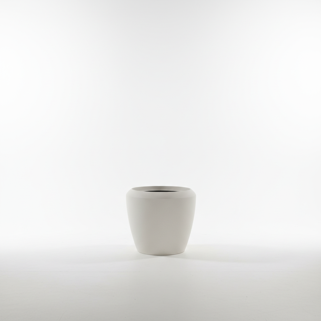 Vazo dekorative plastike në ngjyrë Chalk Beige me formë të madhe, rrethore dhe të ngushtuar poshtë, ideale për të ekspozuar bimë ose lule në ambientet e brendshme.