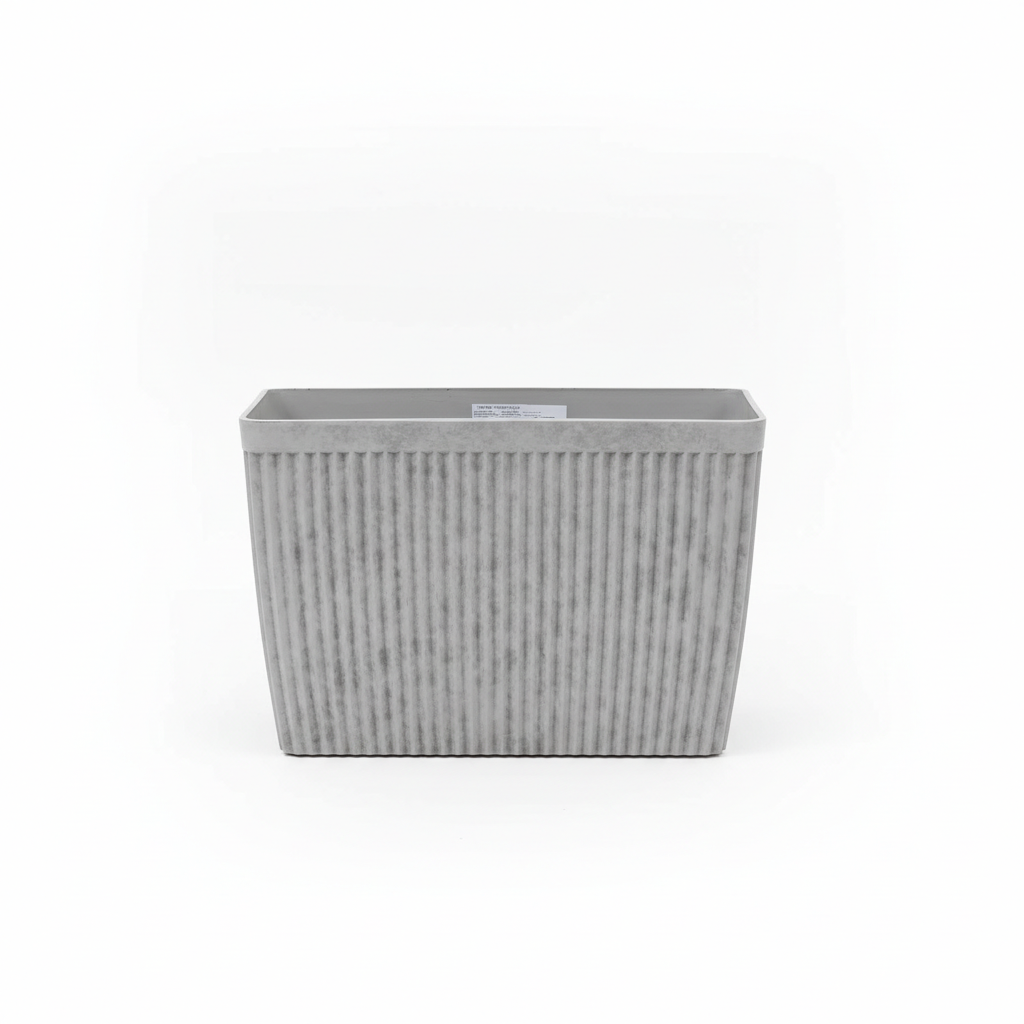 Vazo dekorative drejtkëndëshe në ngjyrë Misty Grey me teksturë vertikale me vija, ideale për vendosjen e bimëve në ambiente të brendshme ose të jashtme të mbuluara. Materiali plastik e bën të lehtë dhe praktike për lëvizje dhe mirëmbajtje.