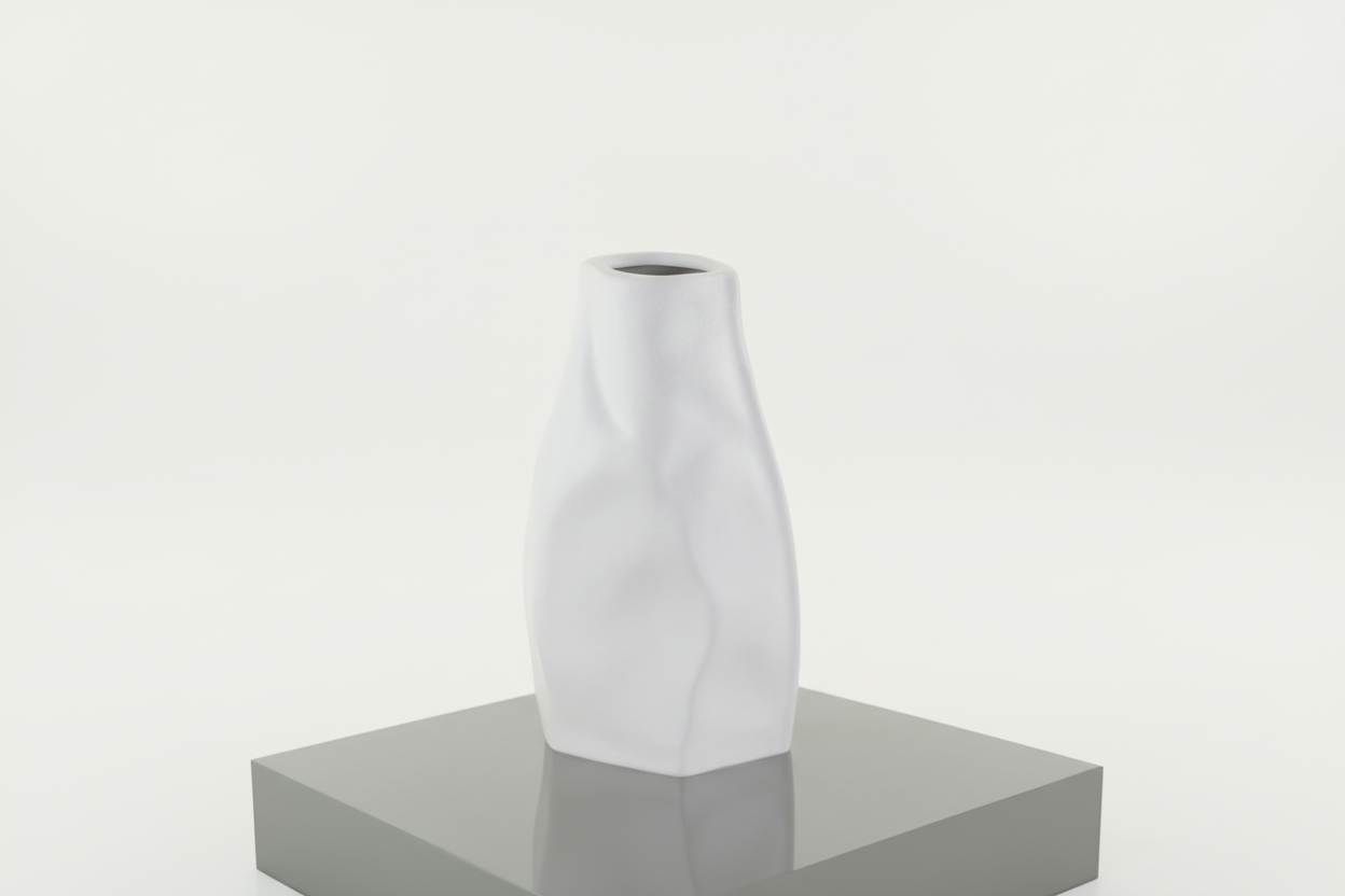 Vazo dekorative me dizajn modern dhe formë organike elegante. Linjat e buta dhe silueta e lehtë e valëzuar krijojnë një efekt skulpturor minimalist, duke e kthyer këtë vazo në një element dekorativ me karakter.