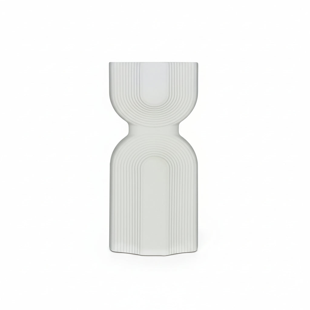 Vazo dekorative me dizajn modern dhe formë skulpturore, ideale për të sjellë stil dhe elegancë në çdo ambient. Linjat e harkuara dhe tekstura me reliev krijojnë një pamje minimaliste, por njëkohësisht të veçantë, që përshtatet lehtësisht me interierë bashkëkohorë.