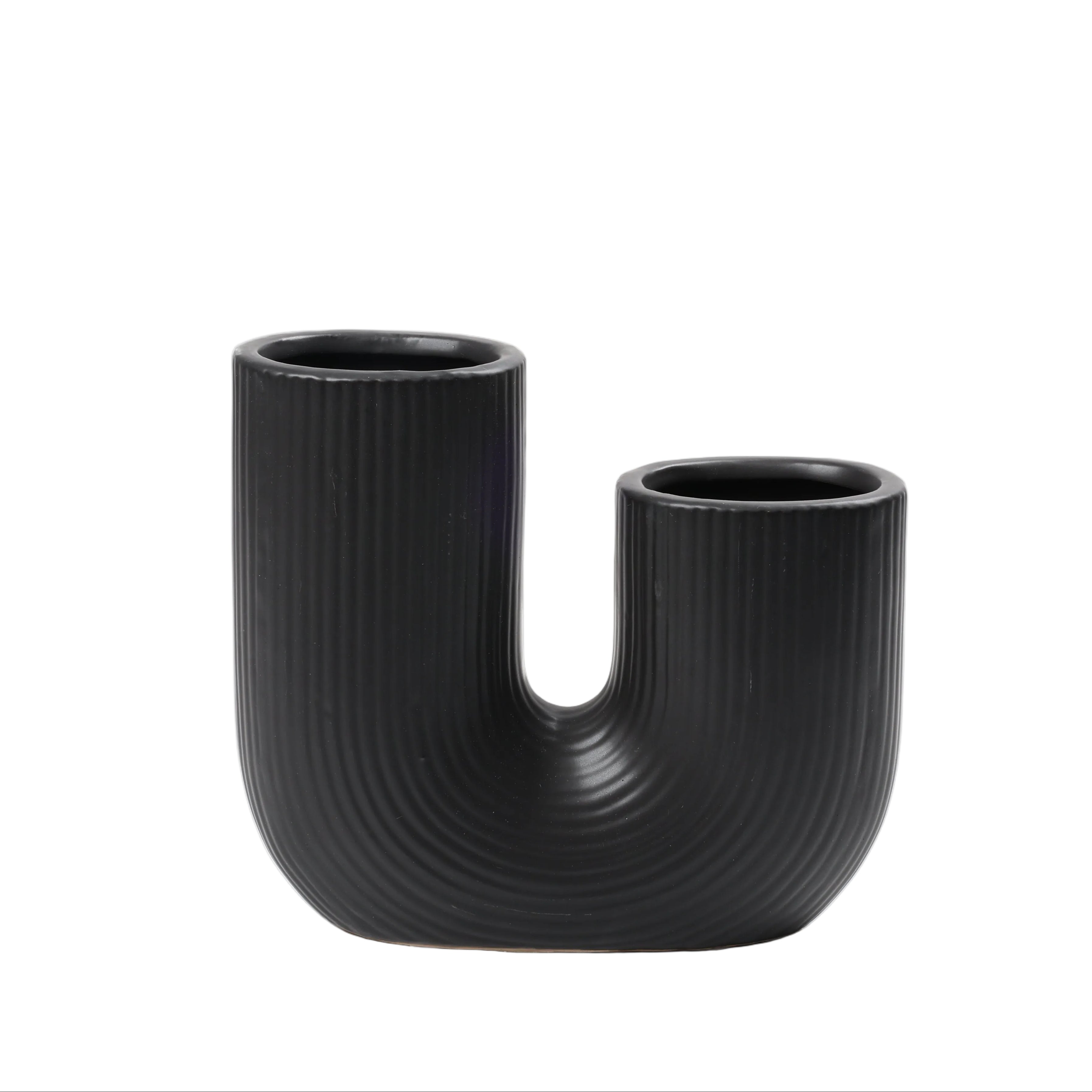 Vazo dekorative me dizajn unik në formë “U”, perfekte për ambiente moderne dhe minimaliste. Ideale për vendosjen e luleve të thata, degëve dekorative apo edhe si element artistik më vete.